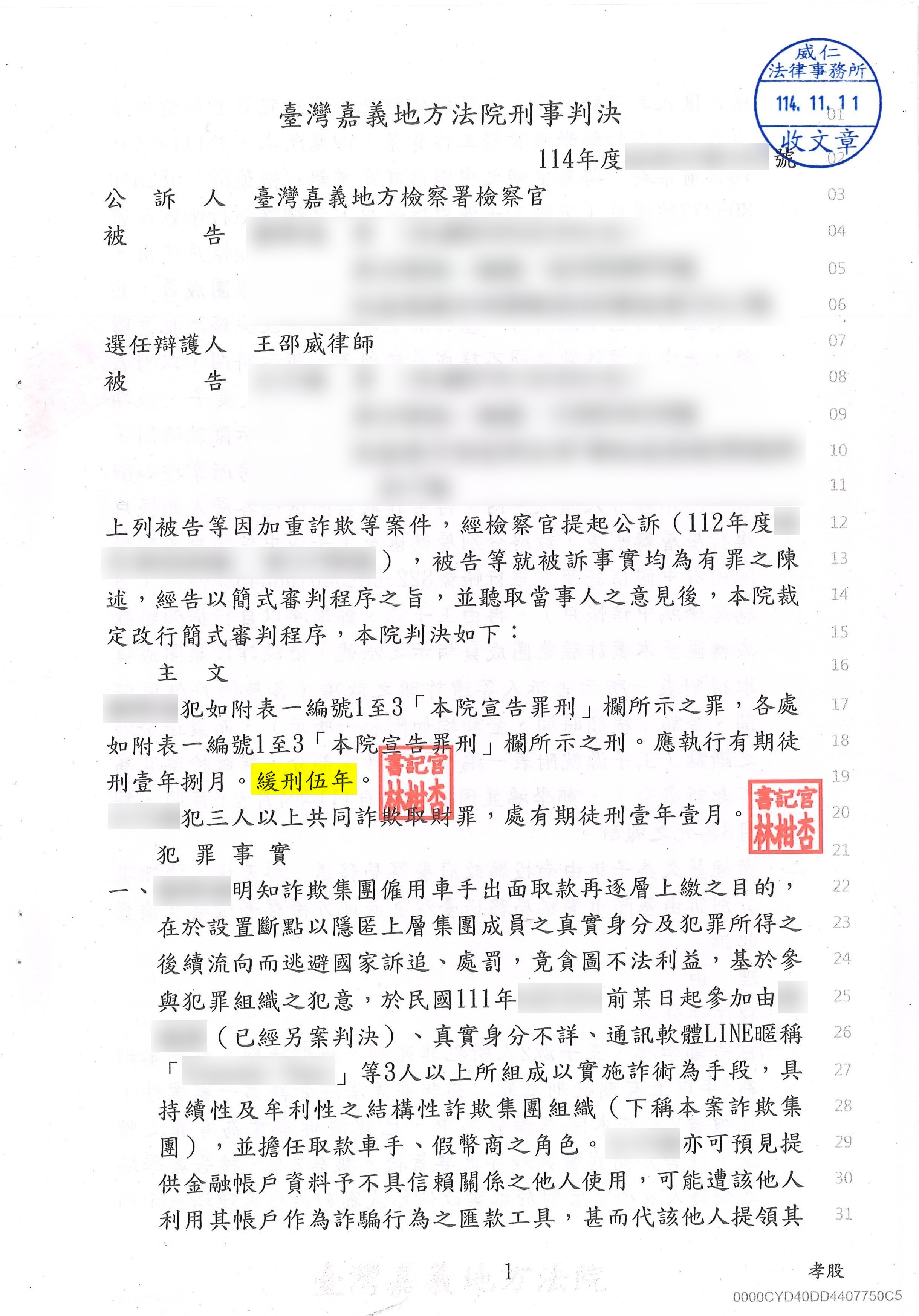 案件類型:刑事案件-加重詐欺、洗錢、組織犯罪